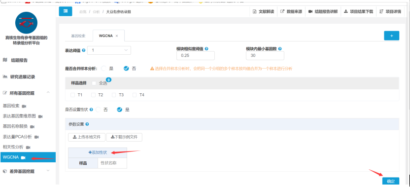導入數據之后,可以根據自己的需要修改樣品ID,由于此處設置的ID會體現在分析報告和分析結果中,因此請慎重考慮后再設置,分析完成后不可再次修改。如果平臺上還沒有您自己的數據,請參考數據上傳先將您的數據傳到云平臺上。